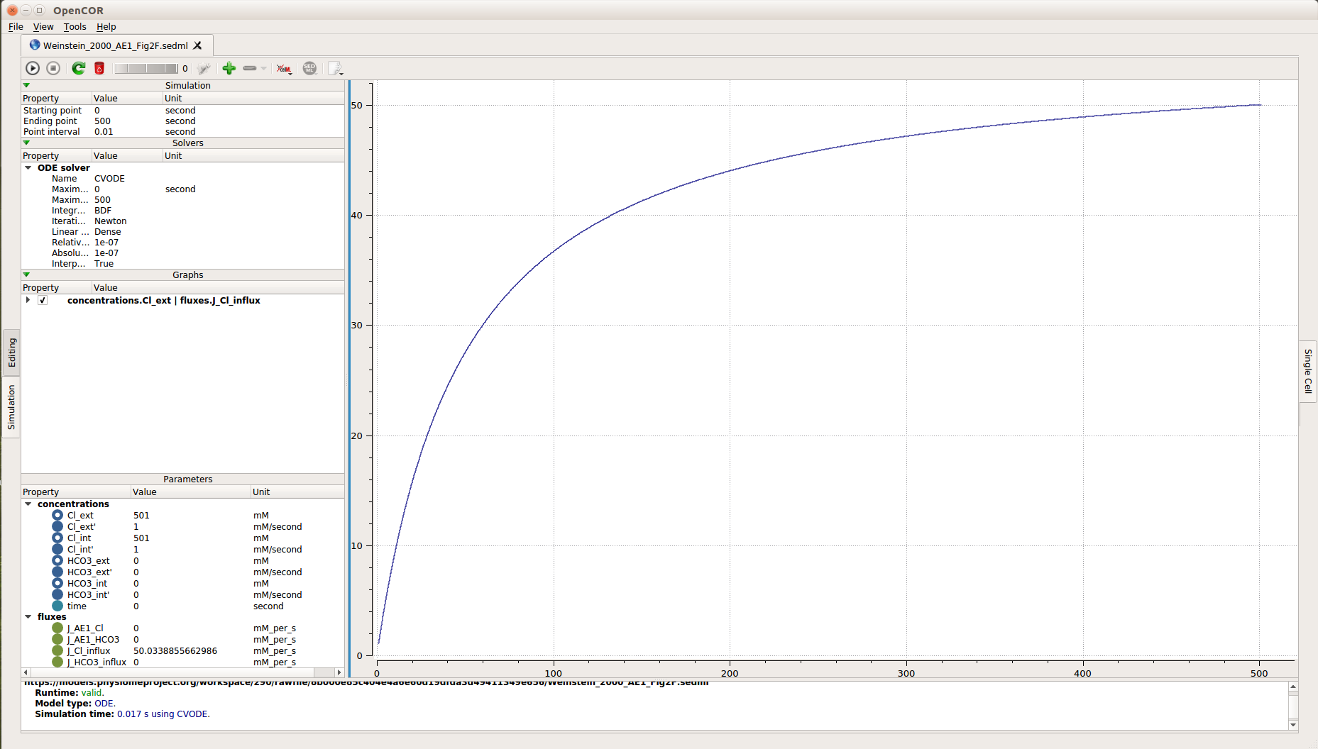 This is the general mathematical model for the AE1 model with modifications to enable simulations which are capable of reproducing Figure 2F in the original paper. See the various views available in the right hand column. The simulation experiment for this model can be obtained by loading the corresponding SED-ML document into OpenCOR and executing the simulation. The results of which are shown below. A rendering of the mathematical model itself is available here.