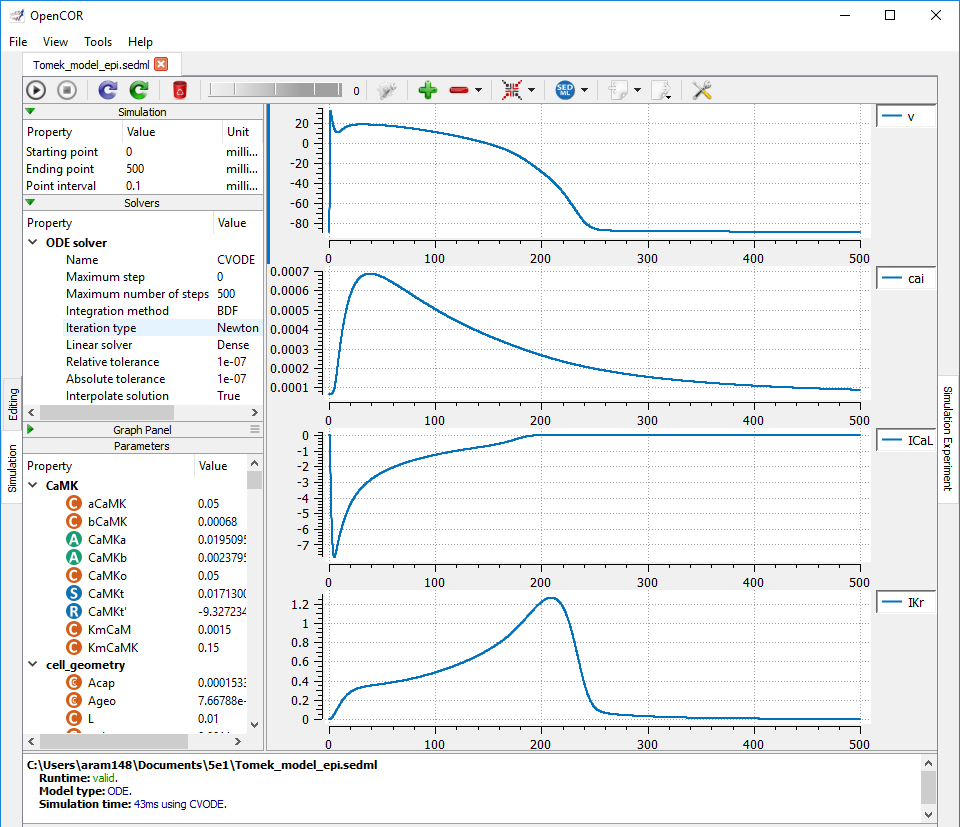 | Results produced by the epicardial SED-ML model with OpenCOR. |