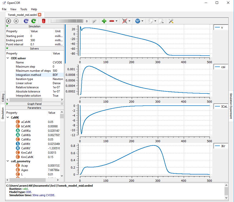 | Results produced by the midmyocardial SED-ML model with OpenCOR. |