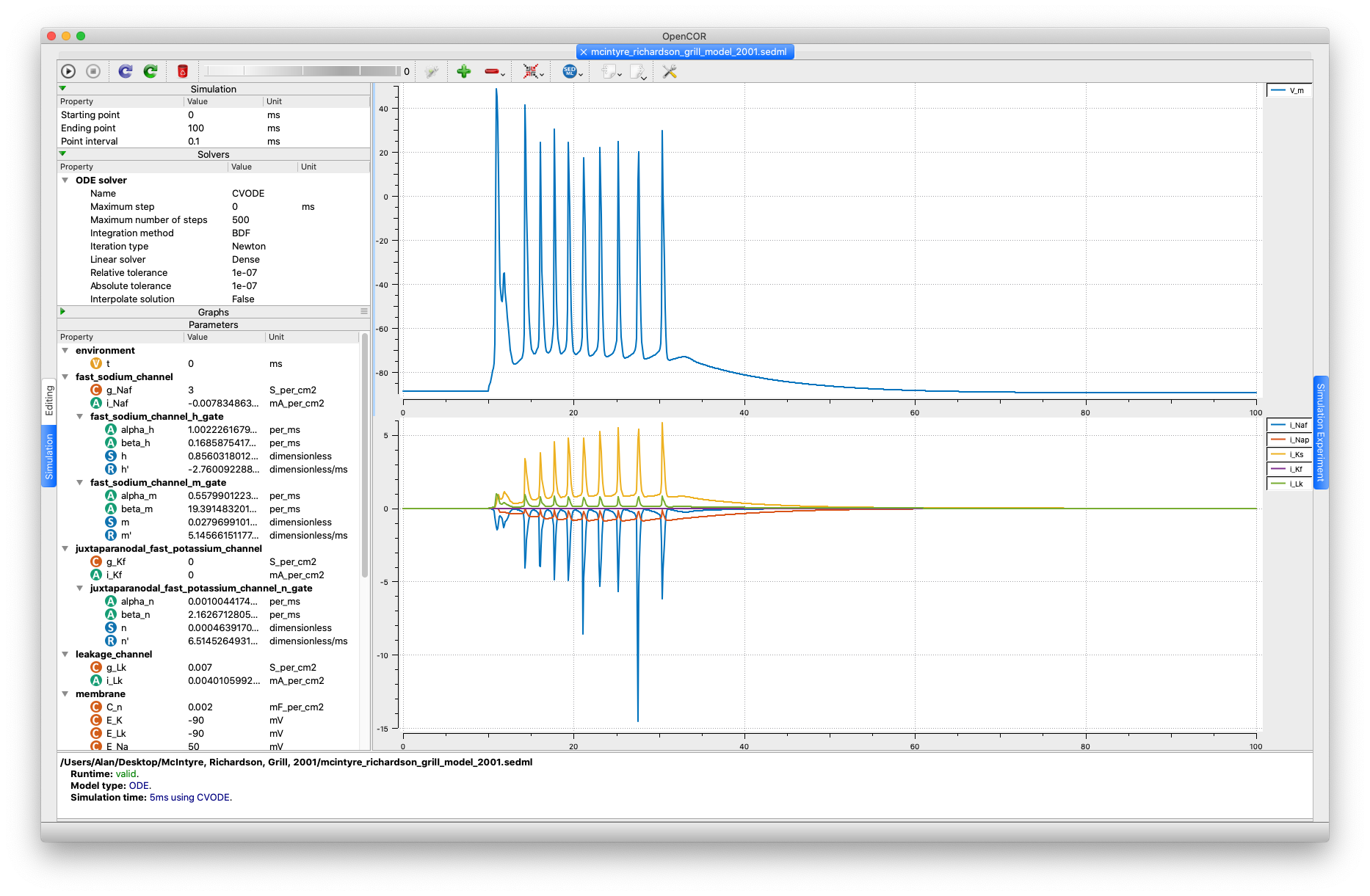 Vm) and the different gating variables (m, h, p, s and n) are provided.