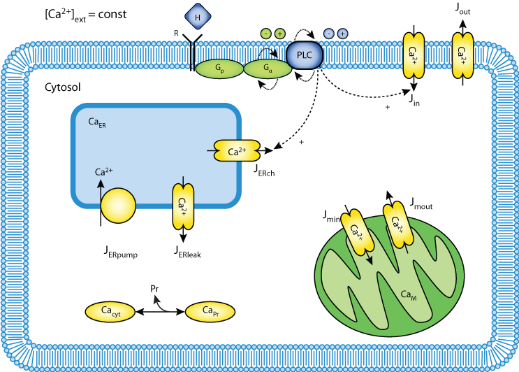 'Mitochondria regulate the amplitude of simple and complex calcium oscillations', Vladimir Grubelnik, Ann Zahle Larsen, Ursula Kummer, Lars Folke Olsen, Marko Marhl, 2001 Biophysical Chemistry, 94, 59-74. PubMed ID: 11744191